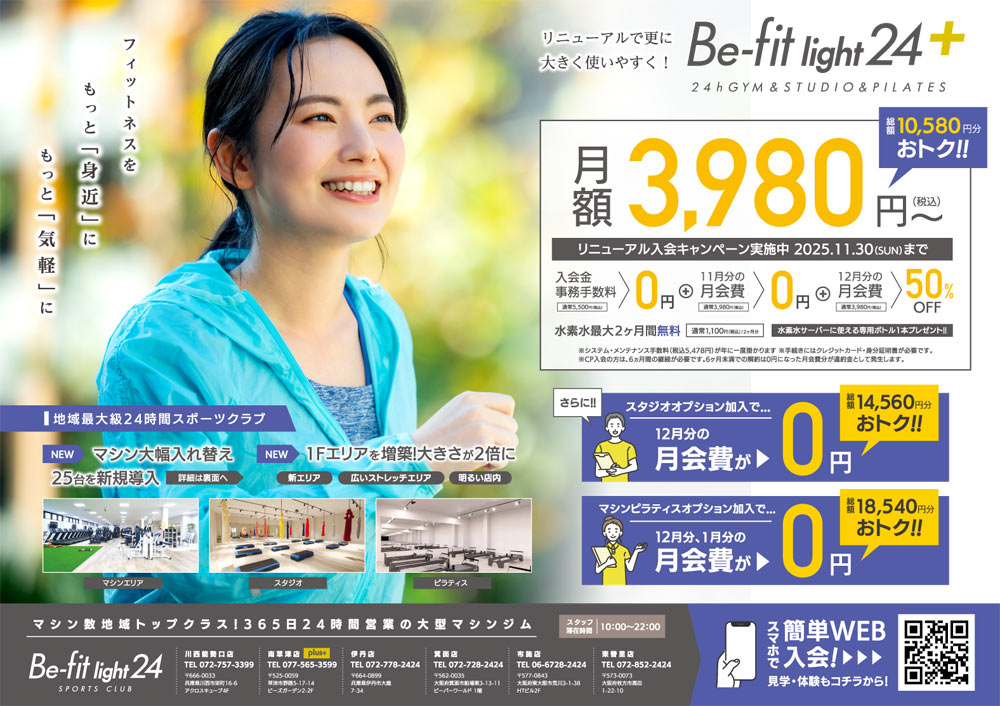 さらに!! マシンピラティスオプション加入で 12月、1月分の月会費が 0円