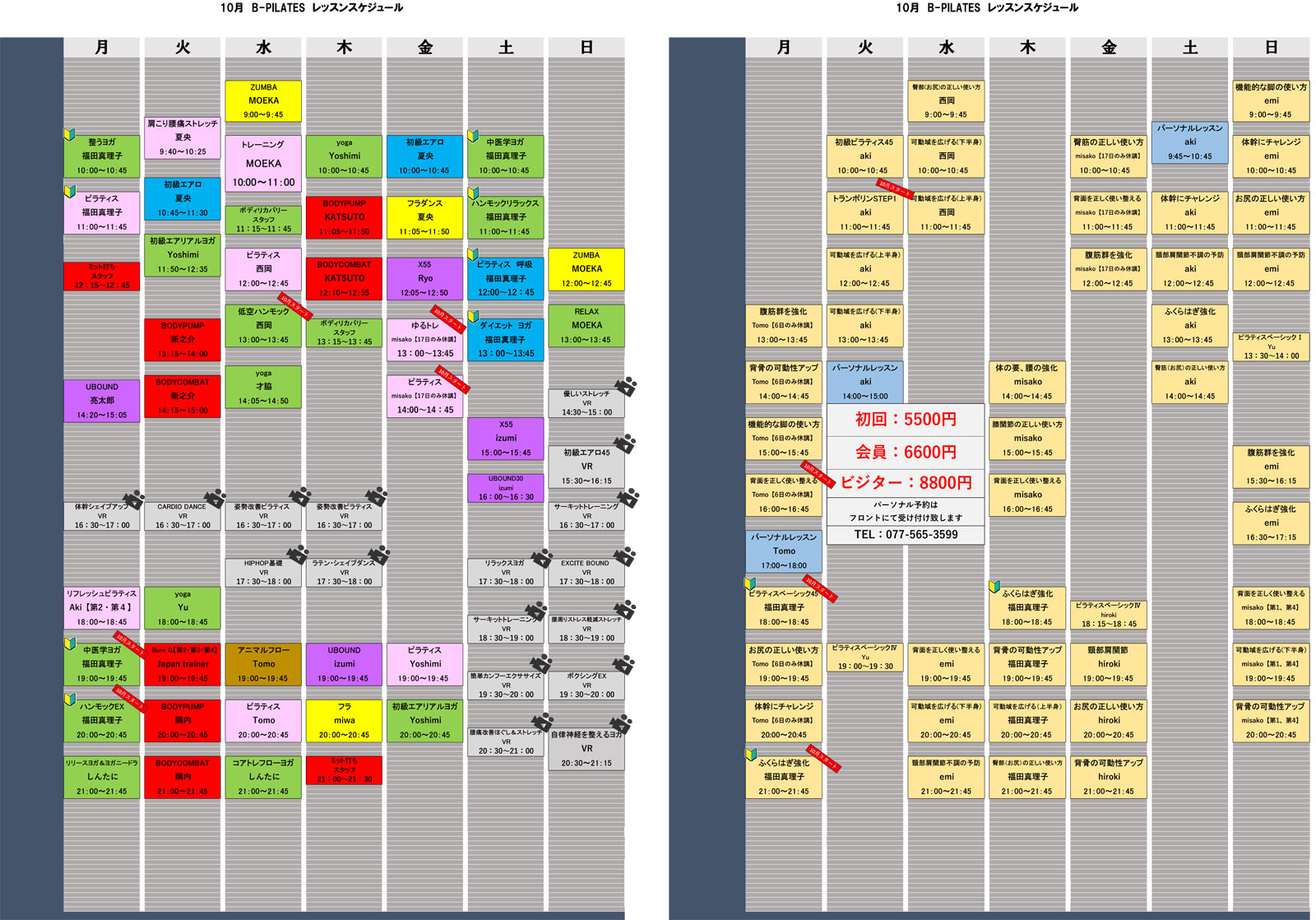 2025年10月のレッスンプログラム2025.09.26 2025年10月からのレッスンプログラムです 皆様のご参加お待ちしております。 Tweet Share Hatena Pocket RSS feedly Pin it ノースタッフデーのお知らせ 前の記事 Be-fit light24 作業のお知らせ 次の記事